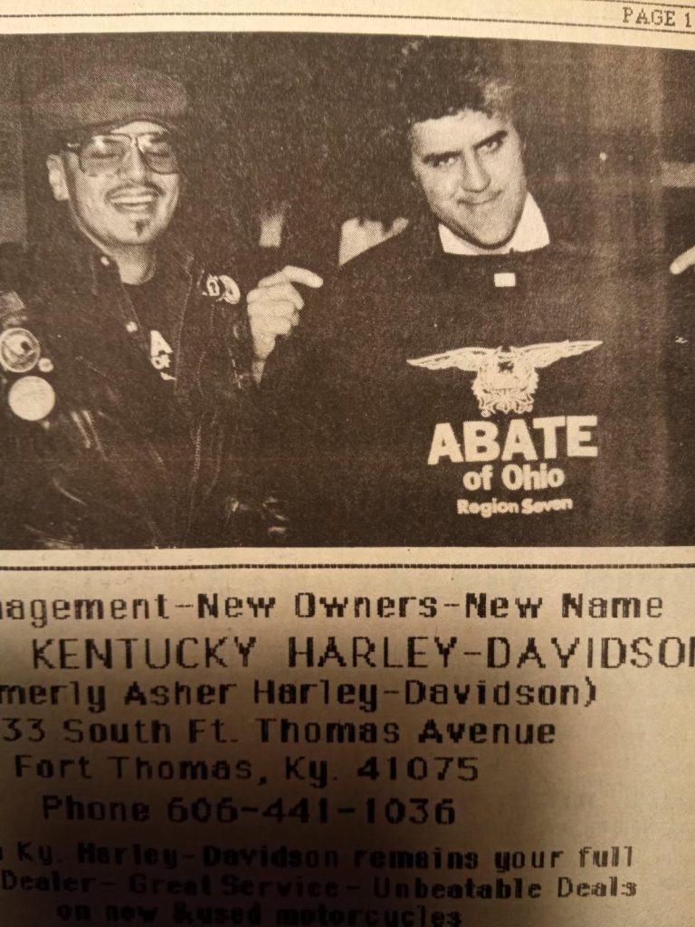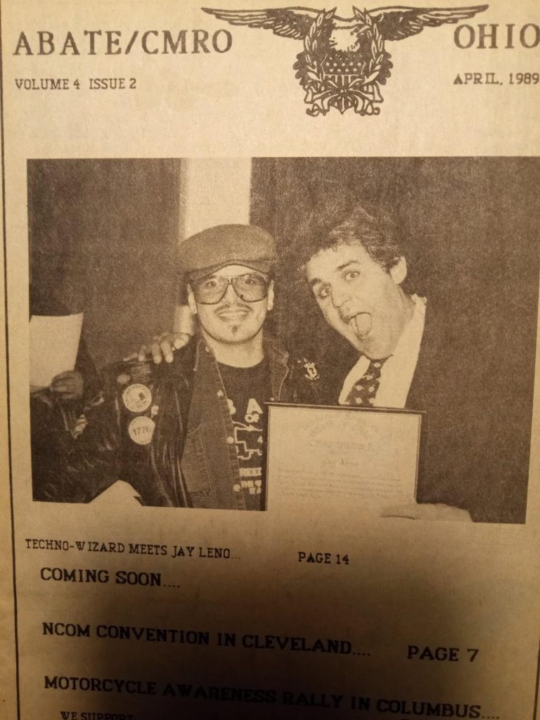 Dan Waterfield and Jay Leno from the Outspokin’ April 1989. Dan was Region 7 Director and ABATE of Ohio’s first State Executive Director.